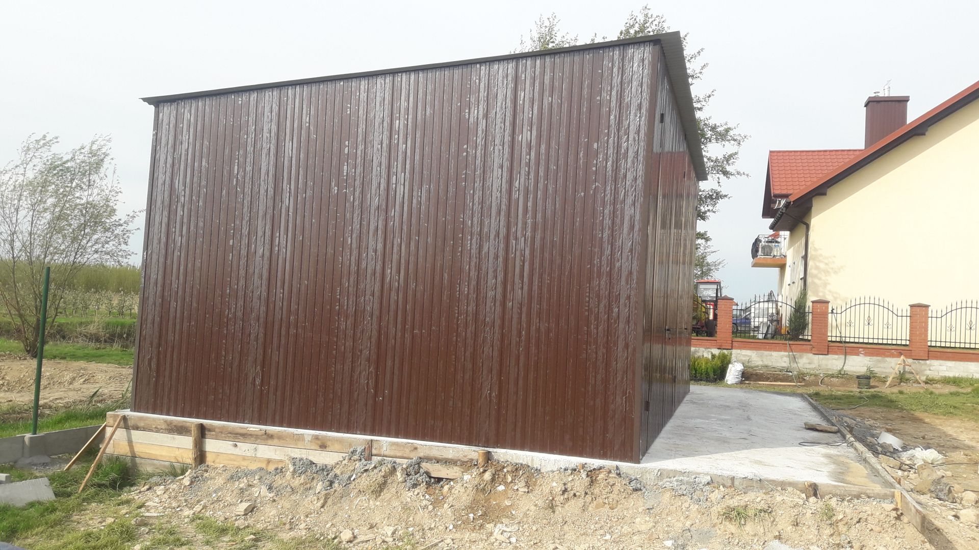 Garaż pokryty jest ocynkowaną blachą trapezową w całości .