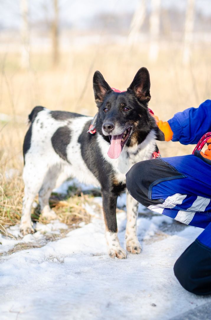 Łatek pięknie chodzi na smyczy, zna podstawowe komendy i prawdopodobnie miał już kiedyś swój dom. Jest psem średniej wielkości, idealnym kompanem do wspólnych spacerów i przygód.