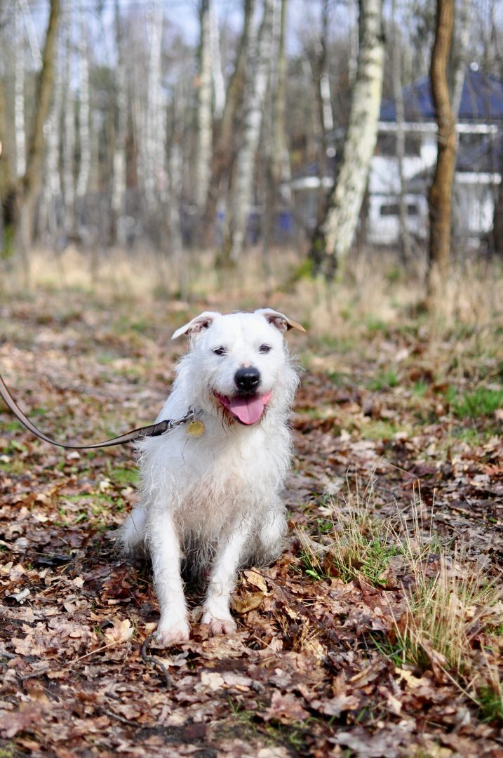 Stanowi wyjątkowo oryginalną mieszankę terriera z amstaffem, co w efekcie dało przepiękne umaszczenie i niepowtarzalną urodę. Swoim urokiem zwrócił uwagę niejednej osoby odwiedzającej schronisko. Ale jak wiadomo, wygląd to nie wszystko…