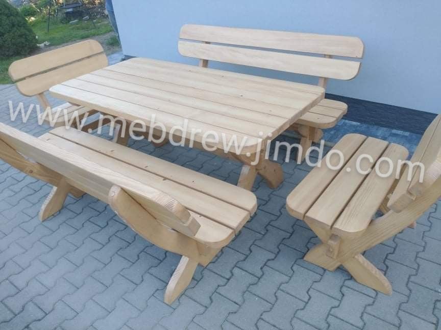 Stół drewniany meble ogrodowe zestaw 2 ławki 2 fotele Tokarnia - Zdjęcie 1