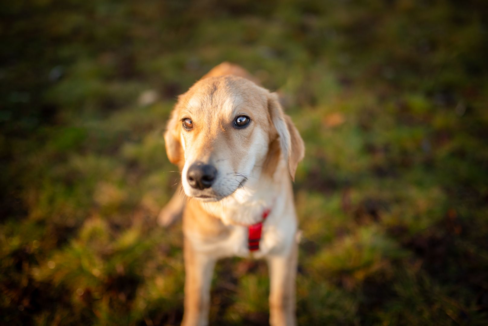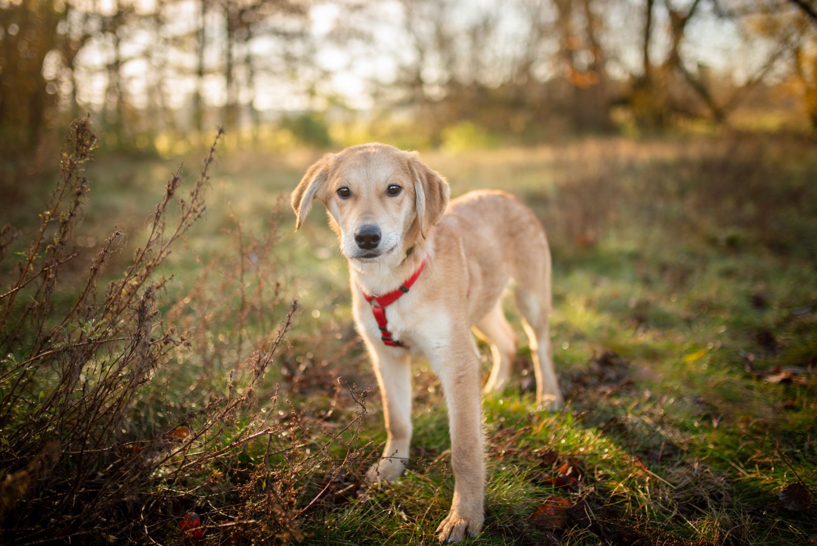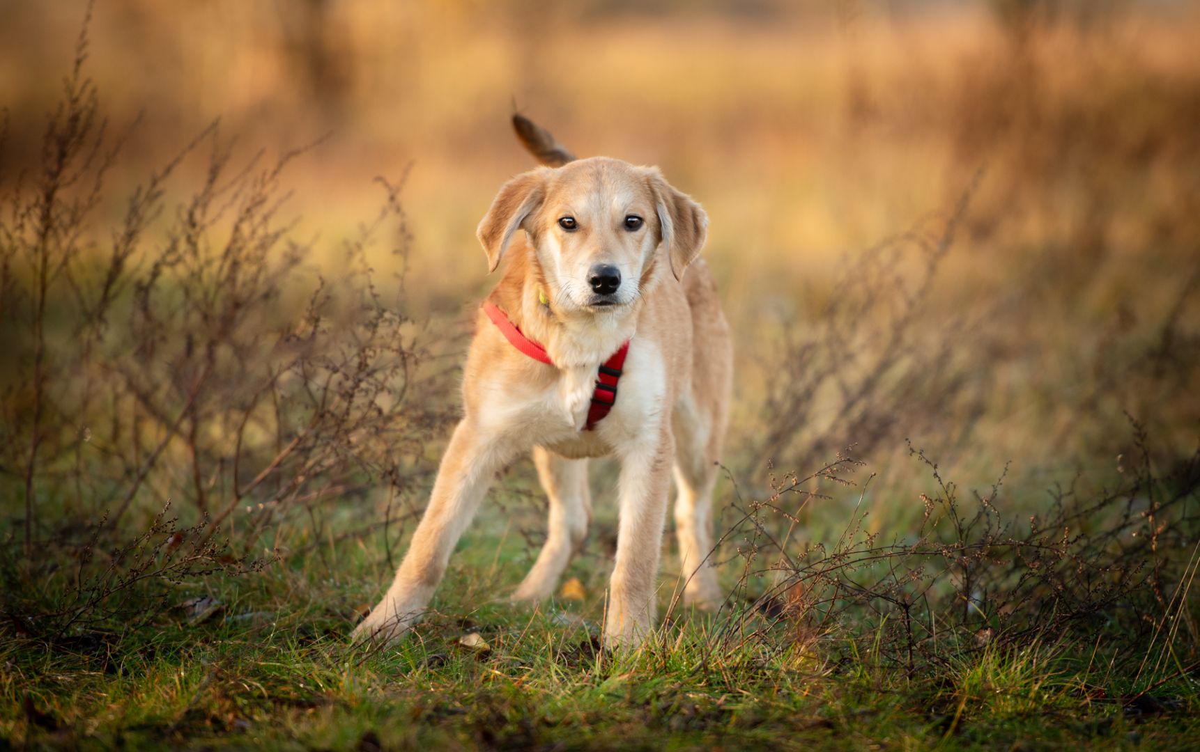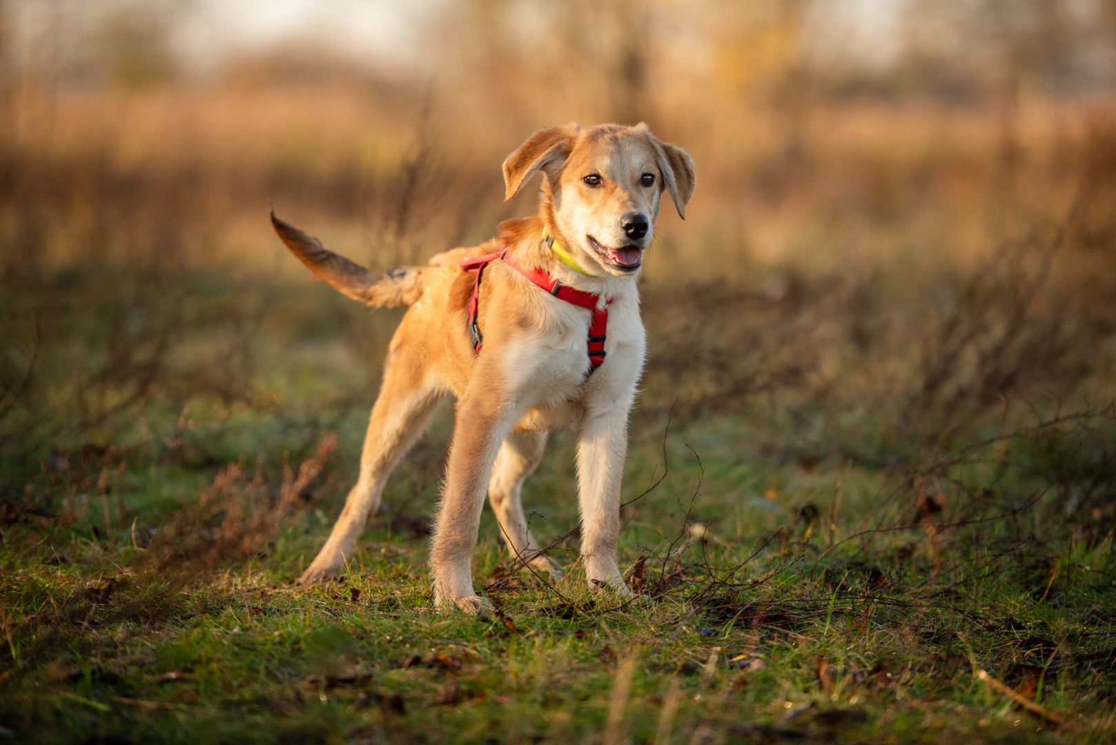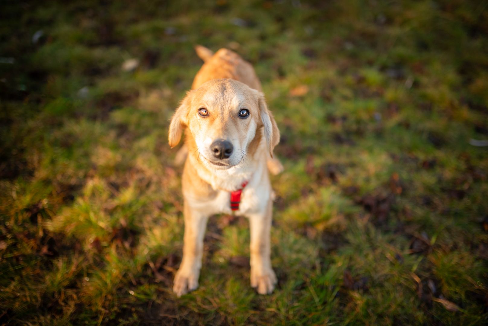 Nowy dom musi się liczyć z tym, że szczeniakowi trzeba cierpliwie pokazywać świat, że może się bać tak głupich rzeczy jak kontener czający się w cieniu albo pani poruszająca się o kulach. Nie ma w nim jednak agresji, jest ostrożna ciekawość, dlatego wiemy, że u odpowiedzialnej rodziny będzie fantastycznym kompanem :)