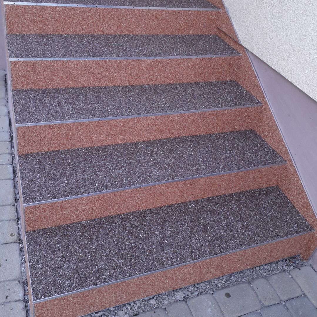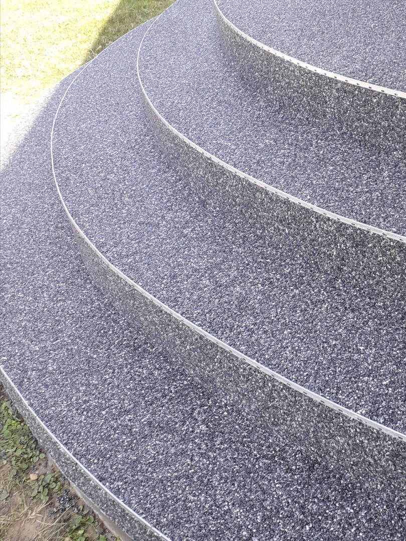 Wykonuje kamienny dywan na schodach, balkonach, tarasach.