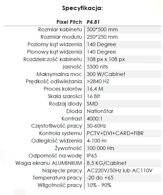 · Zapewnienie konstrukcji pod wybrany rozmiar ekranu (zawsze proszę pytać o dodatkowe elementy/usługi, które możemy zapewnić podczas organizacji)